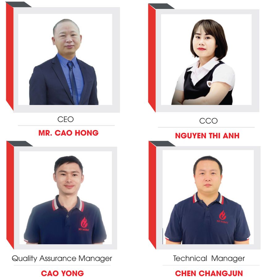 3D HONY tự hào về đội ngũ quản lý và sự lãnh đạo sáng suốt. Với kinh nghiệm, tài năng và chuyên môn sâu trong lĩnh vực chuyên ngành đã dẫn dắt 3D HONY vượt qua mọi thách thức và đạt được tăng trưởng mạnh mẽ trong những năm vừa qua.